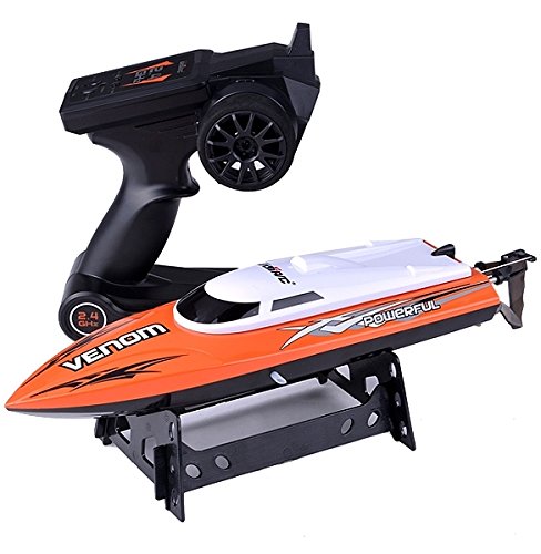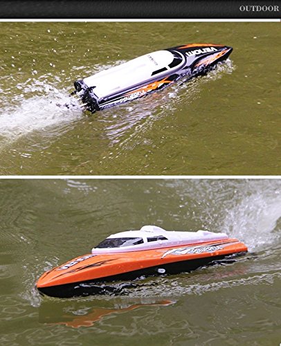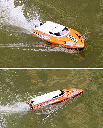 - Feature : New design idea, novel appearance and exquisite workmanship.New high speed RC boat, speed up to 25km/h (15 mph). Capacity 3.7V 500mAh Li-Po battery / High quality guarantees its stable performance.2.4GHz frequency technology can make it feature high capacity of resisting disturbance / Built-in water cooling system, safe and reliable.Waterproof hull with anti-tilt modular design is built from impact-resistant ABS plastic / Various functions like go forward / backward, turn left and right.Professional high capacity chargeable battery and quick battery charger. / Low battery alarm warns you when the boat is almost out of power so you know when to head for the shore. Self-righting feature lets you keep your boat in play even if it capsizes.