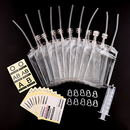 -. Feature : Comes with 10 blood bags. Max. capacity is 12 fl.oz. or 350ml. / Food grade PVC, perfect for filling drinks, jello, liquor...or being used as Halloween decoration, vampire cosplay props. / 50ml syringe for filling drinks into the blood bag. You can fill all 10 blood bags in just minutes. / Unique blood group stickers. Customize your blood bag with different blood types.