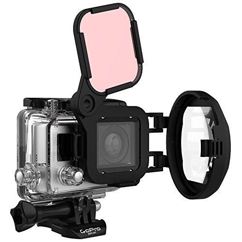 The Switchblade2.0 is the new redesigned version from Polar Pro guaranteed to live up to the harsh scuba environment. The new design utilizes metal rivets and a durable rubberized coating for improved strength. This is the perfect tool for scuba divers filming with GoPro cameras. Also improved is the macro lens, this macro is even more powerful and has a focal range of 3 to 6 inches underwater, perfect for capturing small reef critters. The Red filter is riveted onto the frame to ensure a solid connection and can be flipped open and closed depending on your filming depth. Both the red filter and the macro lens can be used together for stunning macro shots without using video lights. This filter is backed by a 6 month money back guarantee through Polar Pro. Take your scuba videos to the next level.Feature
