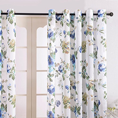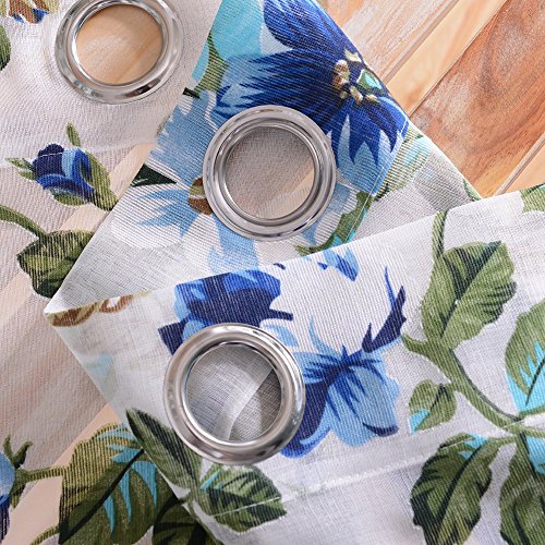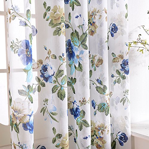 Top Finel Garden Bloom Voile Window Sheer Curtain Panels For Living Room 54 inch Width X 96 inch Length Single panel,Blue,Grommets