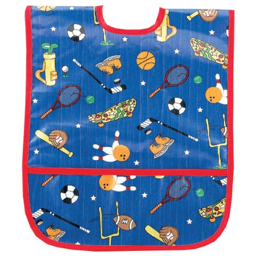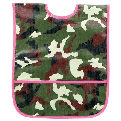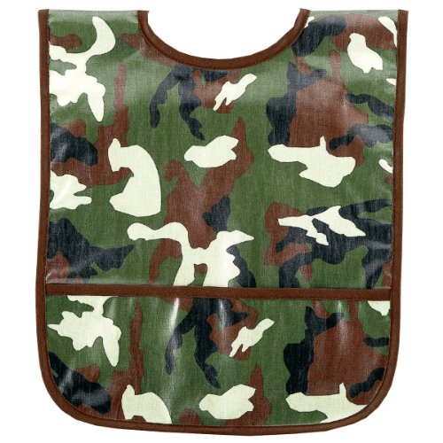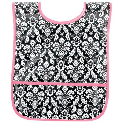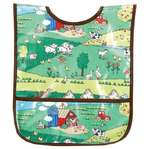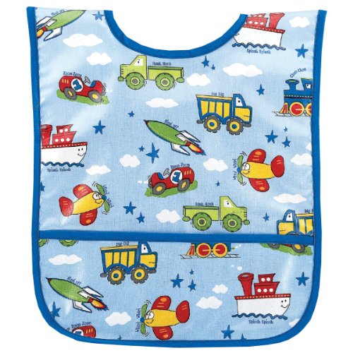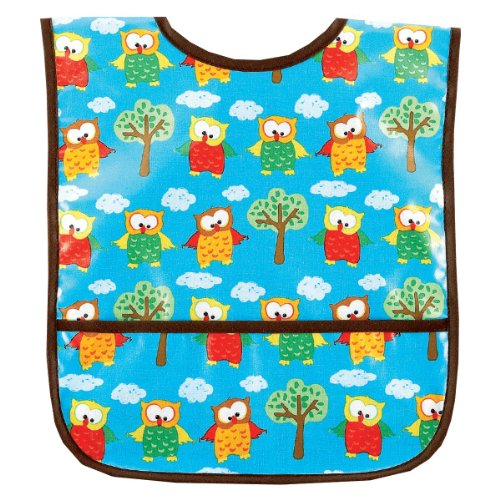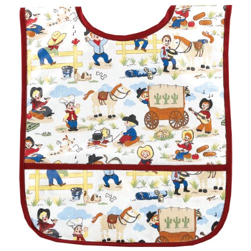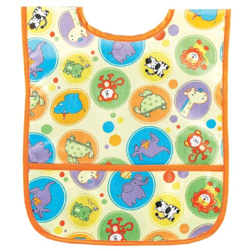 This easy to clean Small Laminated Bib will be a favorite at mealtime. It has a Velcro closure and a pocket at the bottom to catch crumbs and spills. The bib has a fun print and is made in the USA. The laminated fabric makes it simple to wipe it off, but it is also machine washable. It is ideal for babies and young toddlers.Feature