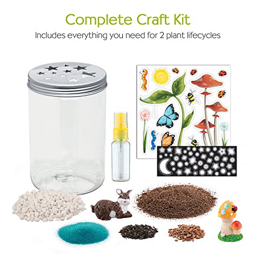 A terrarium is a miniature garden in a simulated natural environment. The Grow N’ Glow Terrarium is a complete kit for helping kids to create their very own miniature eco-system. It’s so easy! You just assemble, decorate, water and watch it grow! It’s a fun way to teach kids about botany, eco-systems and the life cycle of plants. Kids love to see how things work and especially how the magic of seeds, soil, sun and water will blossom into green plants! This is a great lesson in cause-and-effect, responsible stewardship and delayed gratification, since the terrarium needs to be misted each day for the seeds to sprout and grow. Like keeping a pet, the plants will only thrive if they’re given water each day – but no worries – if they forget to water it they learn the importance of water to the life cycle! And when they do water it, the seeds begin to shoot up in 3 to 4 days. After assembly, there are delightful garden stickers and glow-in-the-dark stars to embellish your terrarium further. During the day, when the terrarium is in full light, it soaks up light for the plants and also soaks up light in the glow stickers. Then at night the stickers will glow and it looks like an enchanted little lightning bug house!! The Grow and Glow Terrarium is the perfect STEAM activity that mixes art and science. This terrarium kit is a great project for homeschoolers working on a botany unit, or for anyone who’d like to have a sweet little decorative terrarium by day and a glow-house by night! Everything you need is included for 2 full planting life-cycles, so you can plant your terrarium and watch it grow, then do it all again in a month or so, depending upon how long your plants thrive. The Creativity for Kids Grow and Glow Terrarium is kid tested and safe. Since 1976, Creativity for Kids has proudly created safe and innovative products that meet or exceed U.S. Safety Standards and encourage creativity and imagination in children. Your child will develop their fine motor skills, enjoy using their creative side to build and construct their own terrarium and watch it grow! This craft kit is recommended for ages 6 to 96.Feature
