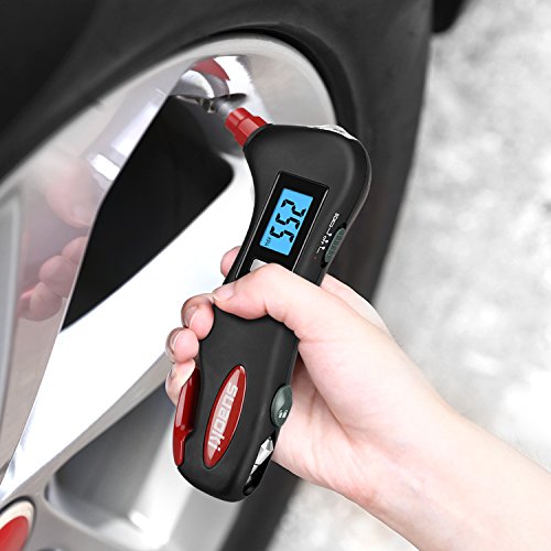 - MORE FEATURES: supports 3 types of pressure units: PSI, BAR and KPA; easily slide the light switch to change between LED flashlight and red safety light