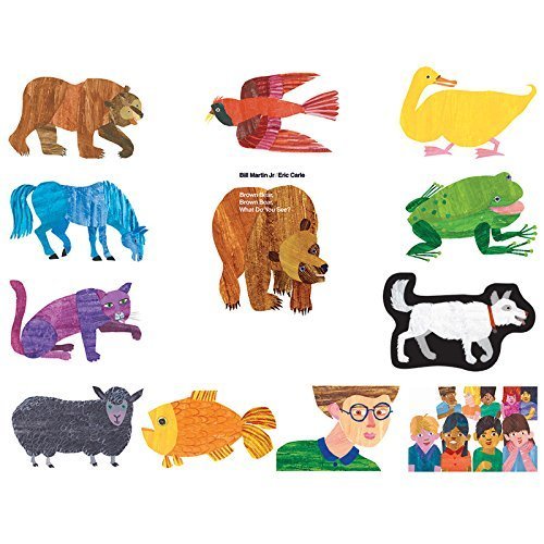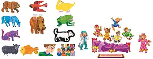 Pre-cut felt pieces from one of one of the best loved books: "Brown Bear, What Do You See?" and "Five Monkeys Jumping on The Bed". Complete with a learning guide to teach concepts of colors, rhyming, sequencing, numbers, counting, and nature. Ages 3 yrs. +.Feature