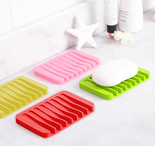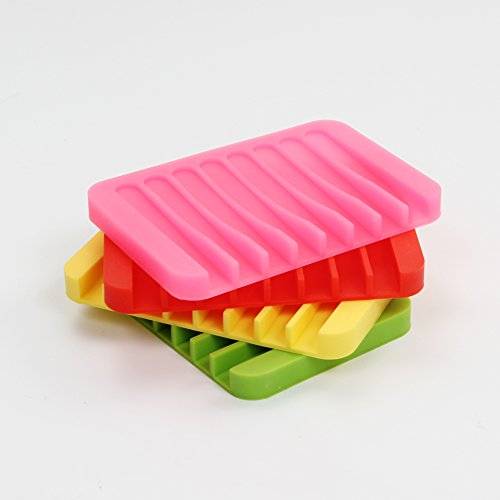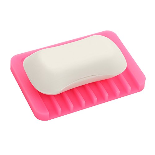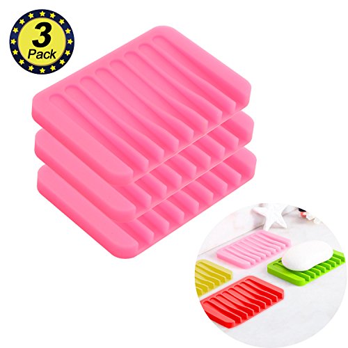 INFOS Soap Dish Shower Waterfall Soap Tray Soap Saver Soap Holder Drainer for Shower/Bathroom/Kitchen/Counter Top,Keep Soap Bars Dry Clean,Easy Cleaning,Flexible Silicone,3 Pack,Pink