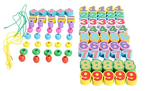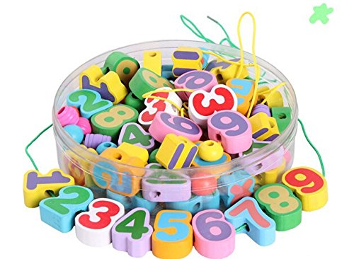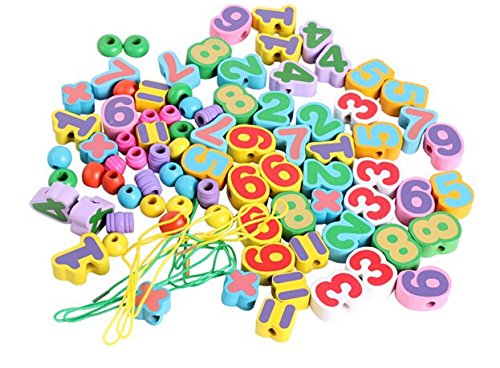 1.Elloapic 85 Piece Colorful Wood Numbers On the Rope Lacing Beads Maths Early Teaching Toy