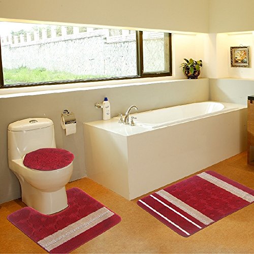 -. Title : 3 Piece Premium Polypropylene Bath Rugs Set with Blocks, And Geometric Embossed Designs Bath Mat 20"x"31.5 Contour Mat 20"x"20.5 and Lid 18.5"x"19