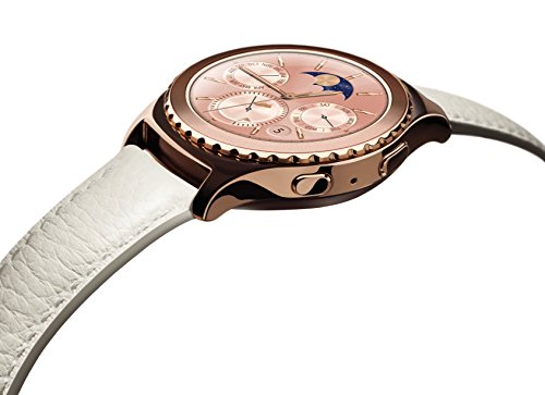 Elevate your style with the Samsung Gear S2 classic Rose Gold. Genuine Leather, precious metal and exceptional finishes come together to create a sophisticated wearable that goes with anything. The intuitive circular face and bezel let you navigate effortlessly to Get to what you need. With access to important notifications at a glance, the head-turning Samsung Gear S2 classic Rose Gold gives you more out of every moment of your day.Feature