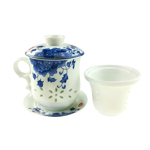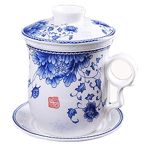 -. Title : ufengkeHand Painted Flower Blue And White Porcelain Tea Cup With Lid And Saucer