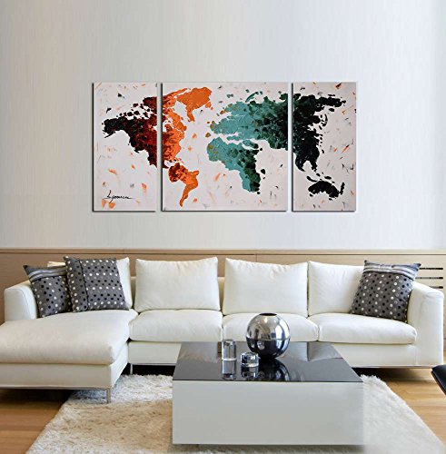 -. Title : ARTLAND Modern 100% Hand Painted Abstract Oil Painting "World Map" 3-Piece Wall Art on Canvas for Living Room Artwork for Wall Decor Home Decoration 24x48 inches
