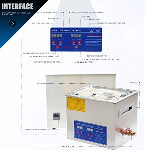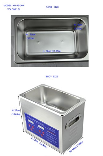 Studio : Shenzhenshi YiyuanInternational Publisher : Shenzhenshi YiyuanInternational Binding : Kitchen Product Description Product details: 1.Tank Capacity:6L 2.Material:Stainless Steel 304SUS 3.Ultrasonic Frequency:40KHZ 4.Timer:1-30 Minutes,Digital Timer 5.Power Supply:AC100-120V 50/60HZ AC220-240V 50/60HZ 6.ultrasonic power:180W 7.Heating Power:200W 8.Cleaning Process£ºHot Water Cleaning 9.Tank Size:350x150x150mm (L x W x H) Unit Size:330x180x270mm (L x W x H) Package Size:430¡A280¡A380mm(L x W x H) 10.Certification:ROHS,CE 11.Warranty:1year Product Features: 1.Digital Control Timer. 2.Isolated-Circuit Design, Keep Water Away for Extra Safety. 3.Wide-Diameter Transducer. 4.Powerful Transducer and Clear Circut 5.Top Quality Steel Made for Body,Cover and Base. 6.Digital LCD Display,Live Temperature Display.Easy Operation. 7.Basket and Tray Anti-noisy. Professional Use: Medical and Dental Clinics, Tattoo Shops, Scientific Labs and Golf Clubs. Jewelers, Opticians, Watchmakers, Antique Dealers and Electronics Workshops etc. Personal or Home Use: Jewelry: Earrings, Necklace, Rings, Bracelets and Diamonds. Glasses and Timepieces: Glasses, Sunglasses, Optical Lenses, Contact Lens Accessories, Watch Chains and Waterproof Watches. Commodities: Tattoo Guns and Tubes, Electric Shaver Heads, Razor Blades, Dentures, Combs and Toothbrushes. Stationery: Pen-heads, Printer-heads, Inkjet Cartridges and Seals. Metal Articles: Ancient Coins, Badges, Valves, Machine Nozzles, Electronics Components and Mechanical Parts. Metal Dishware: Forks, Knives, Spoons and Other Small Silverwares etc. 0