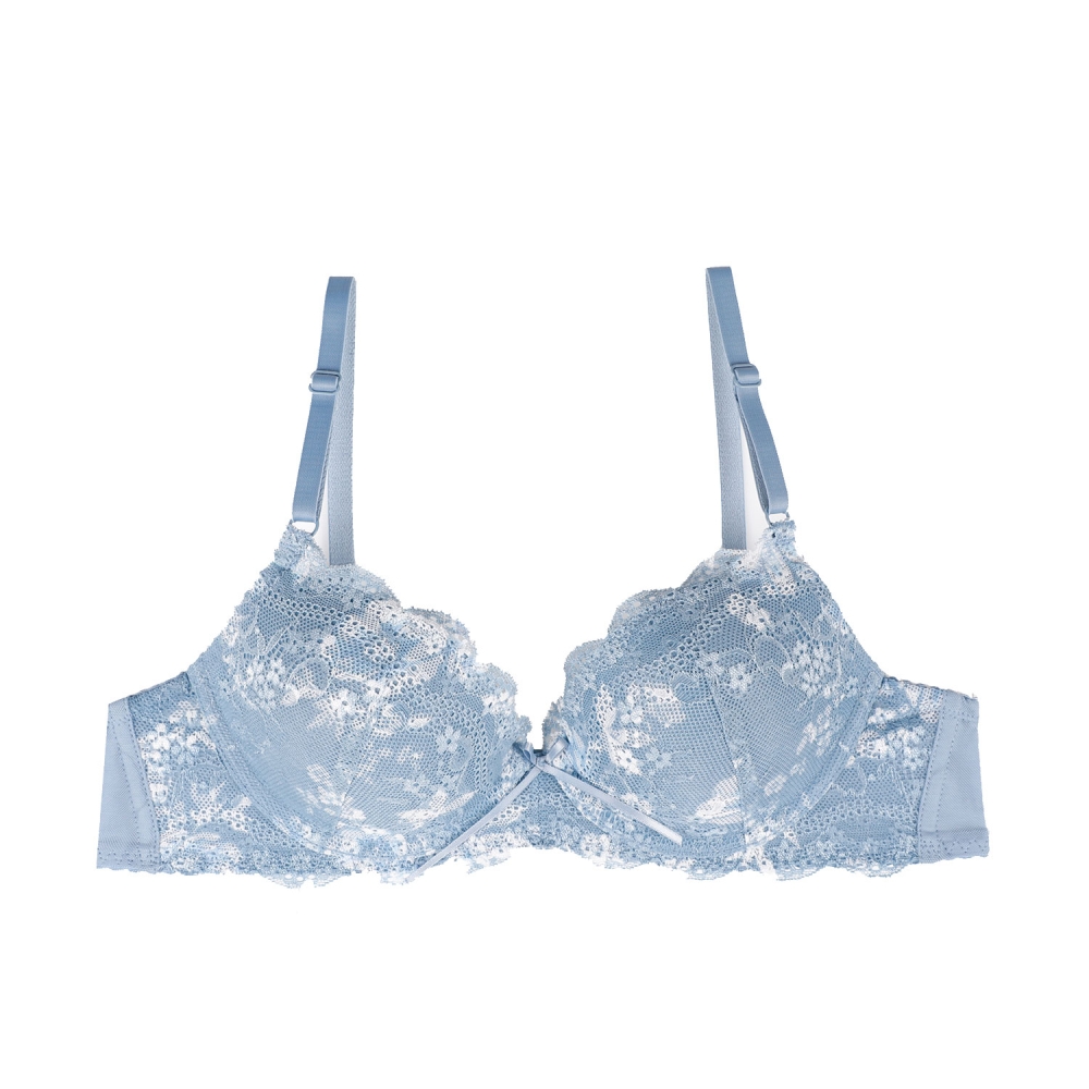 블루톤 레이스에 아이보리 컬러감의 플로랄 프린트가 스프링시즌에 딱맞는 페미닌한 디자인의 브라.