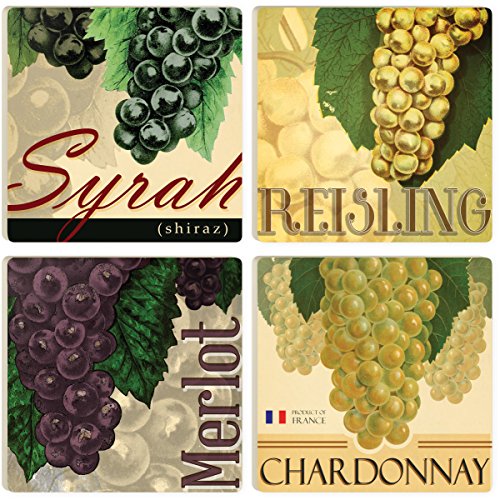 Fine Wine Super Absorbent Ceramic Beverage Coasters - 4 Pack Set