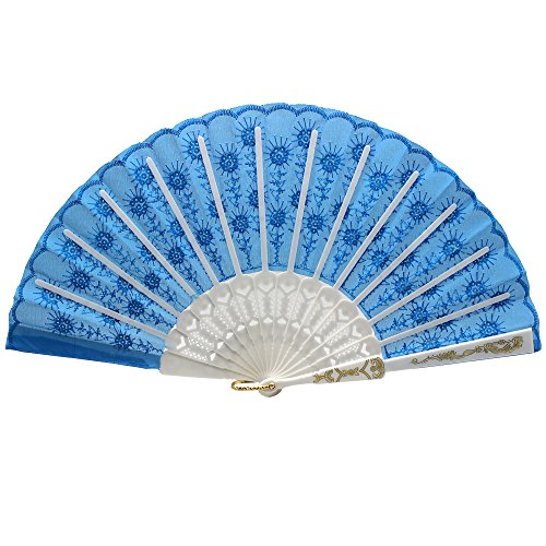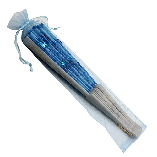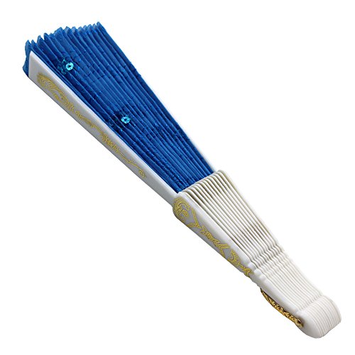Newstarfactory Peacock Feather Blue Sequins Design White Plastic Folding Hand Fan with Exclusive Gift