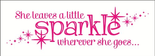 Wall Decor Plus More WDPM2723 She Leaves A Little Sparkle Wherever She Goes Wall Sticker, 36-Inch x 11-Inch, Hot Pink