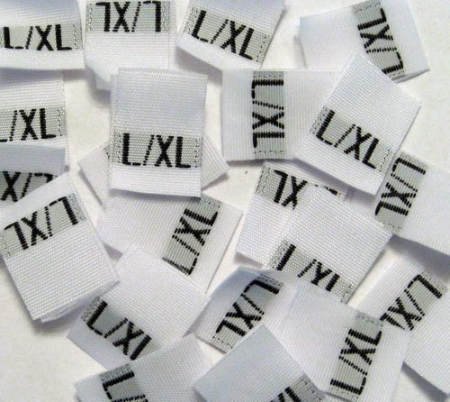 - Size L/XL (Large -Extra Large) Woven Clothing Size Tags (Pkg of 100)