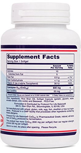 -. Title : Protocol For Life Balance - CoQ10 600 mg - with Lecithin & Vitamin E to Support Heart Muscle - 60 Softgels