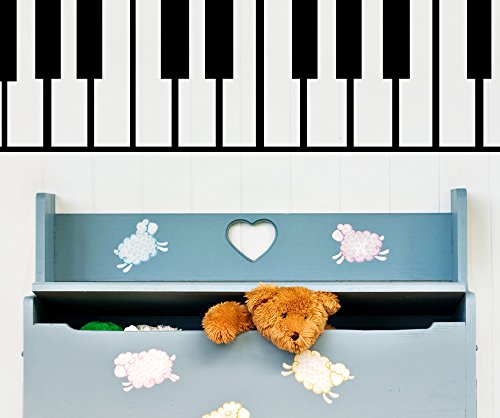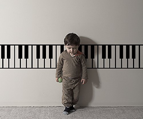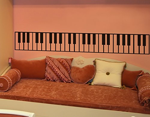 Stickerbrand Music Vinyl Wall Art Piano Keys Wall Decal Sticker - Black, 10" x 72". Easy to Apply & Removable.