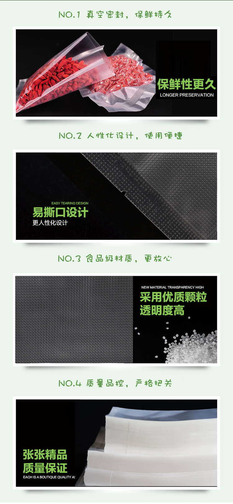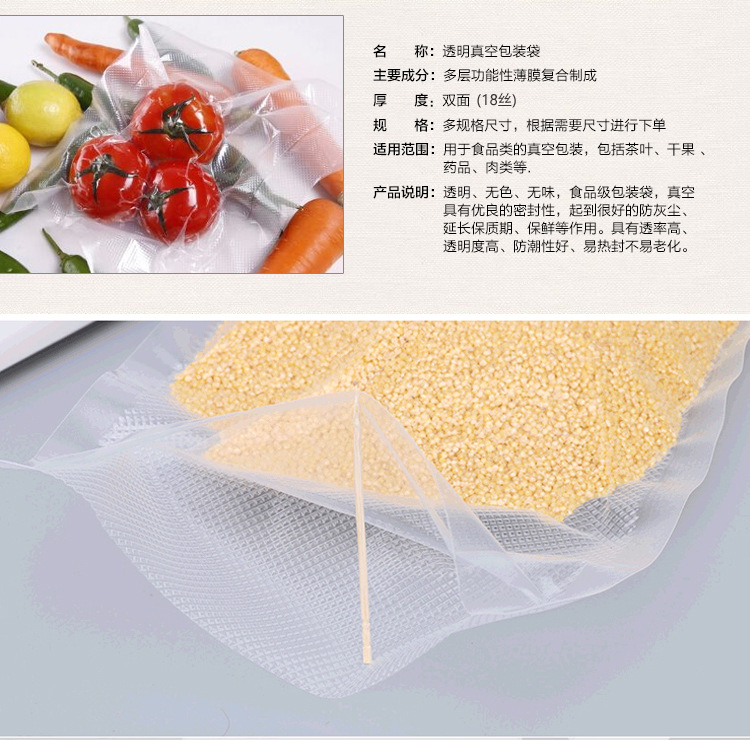 Match Type Vacuum Seal Bags: The bag with a folding angle on both sides, with single or Two-sided reticulate surface, Can be pumped vacuum and can be sealed; The bag without reticulate and without folding angle, Just can be sealed only. When use the single-sided reticulate surface bag, please keep the smooth side in the upper, and reticulate side down.