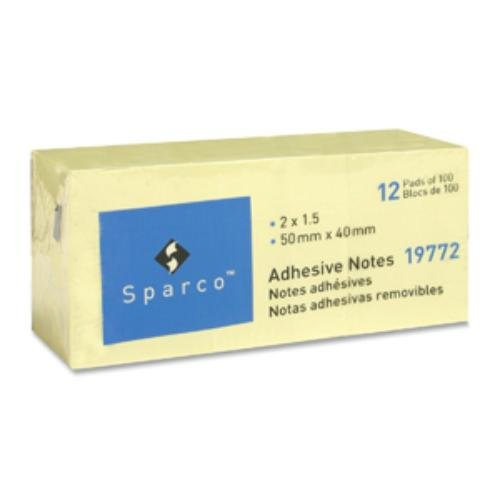 Sparco Adhesive Notes, 1-1/2 x 2 Inches, 100 Sheet/Pad, 12/Pack, Yellow (SPR19772)