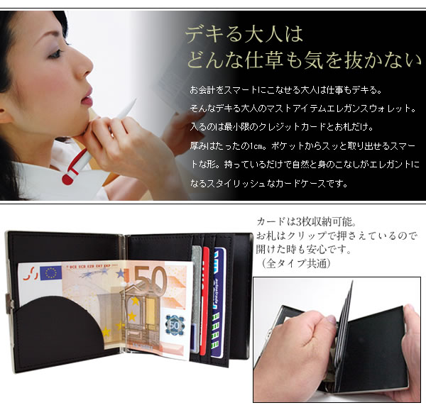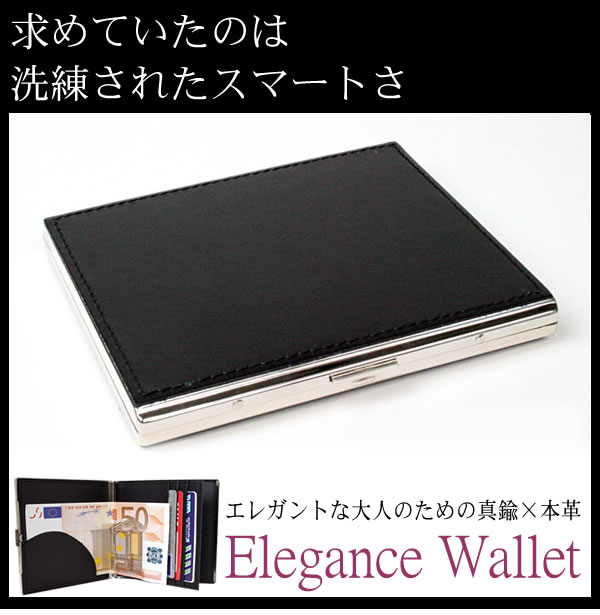 真鍮と本革の絶妙なバランスがスタイリッシュ。入るのはクレジットカード3枚とお札だけ。必要以上のものは持ち歩かない-それがデキる大人。憧れのあの人へのプレゼントにも。日本製 ※サプライヤー直送品  ご注文後、当日~1営業日後の出荷となります【商品名】エレガンスウォレット 6-30951-10 Sレザーブラック
