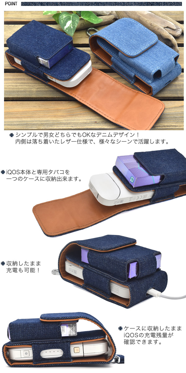 iQOSもタバコもどちらも収納できる! iQOS用デニムデザイン ポーチケース
