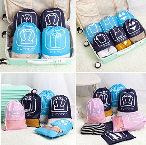 size of 5 big bag:(12.6*15.7)in, size of 5 medium bag:(10.6*14.0)in Not just for traveling, the Packing pouch Set is a great home organization solution. Pack odds and ends into the cubes and then store them away in drawers, under the bed, on shelves or in the closet. It's the simple, stylish way to reduce clutter. Easy to washable, prevent bacterial growth, smell reduction, reasonably arrange luggage space to make your life more convenience. 0