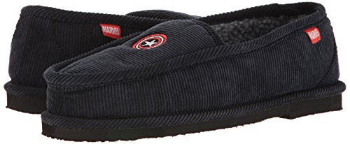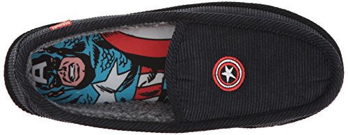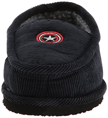 Studio : Marvel Publisher : Marvel Binding : Apparel Product Description Show the shield! these marvel captain america slippers in corduroy material feature an embroidered captain's shield on the front, and a full color art print in the footbed. great for around the house, but with an indoor-outdoor sole, these can be worn outside as well. the moccasin style construction means it won't slip off you foot, but you can fold down the back and slide in if preferred. great for gift giving 0