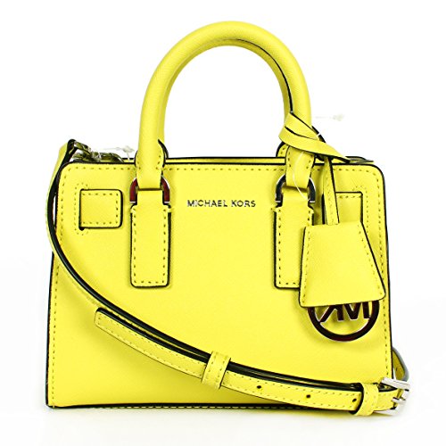 The sleek mini Dillon makes the most of any outfit with its stylish crossbody strap and signature golden hardware. By MICHAEL Michael Kors. Saffiano leather Double handles with 3" drop; adjustable crossbody strap with 22"-25" drop Top zip closure Exterior features gold-tone hardware Interior features 1 open pocket 7" W x 5-1/4" H x 2-1/2" D Silhouette is based off 5'9" model Imported