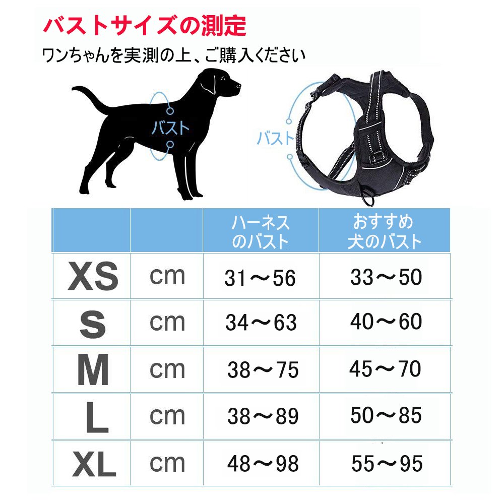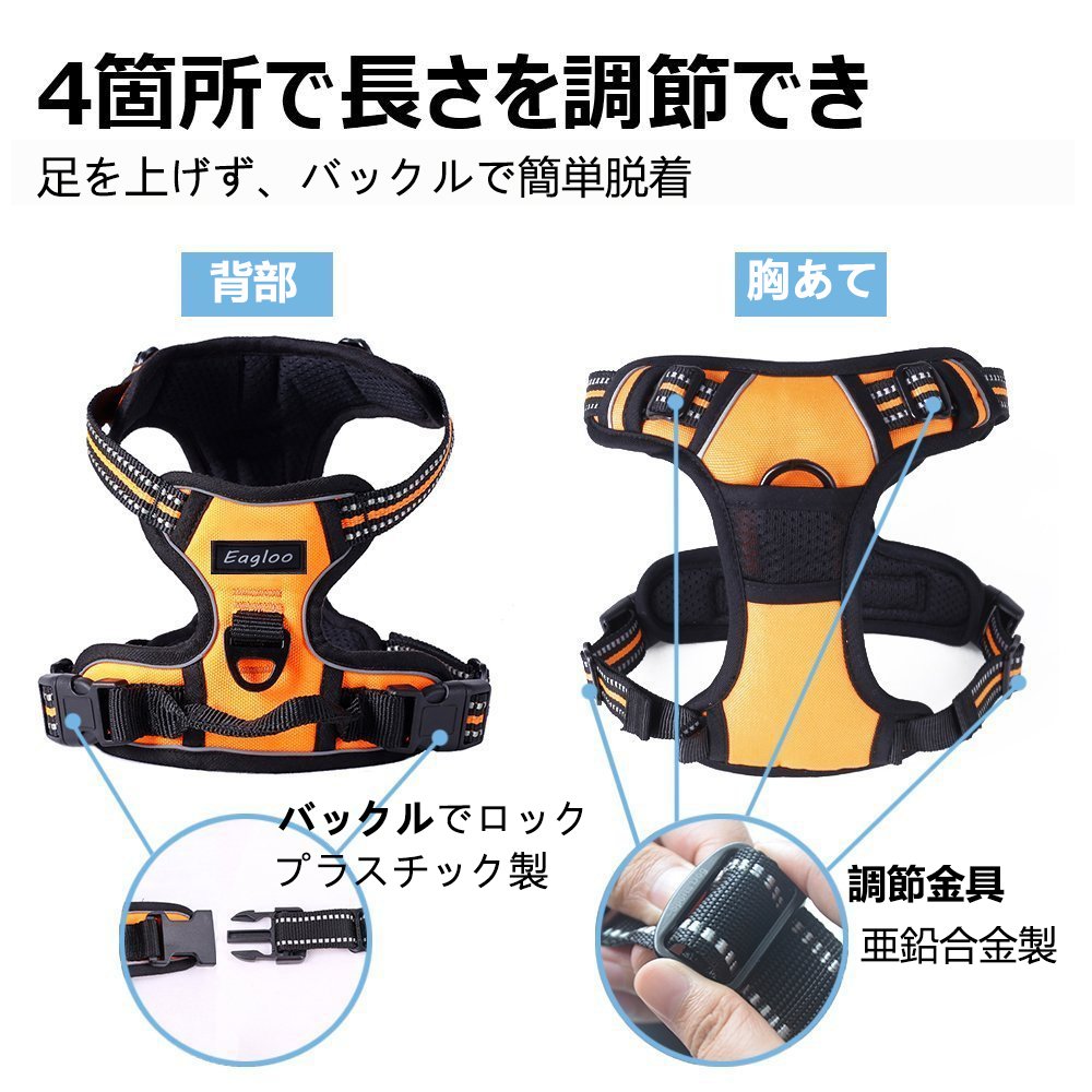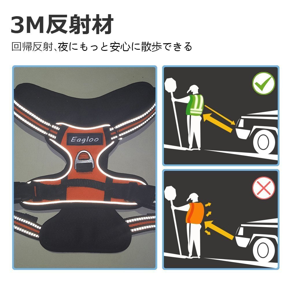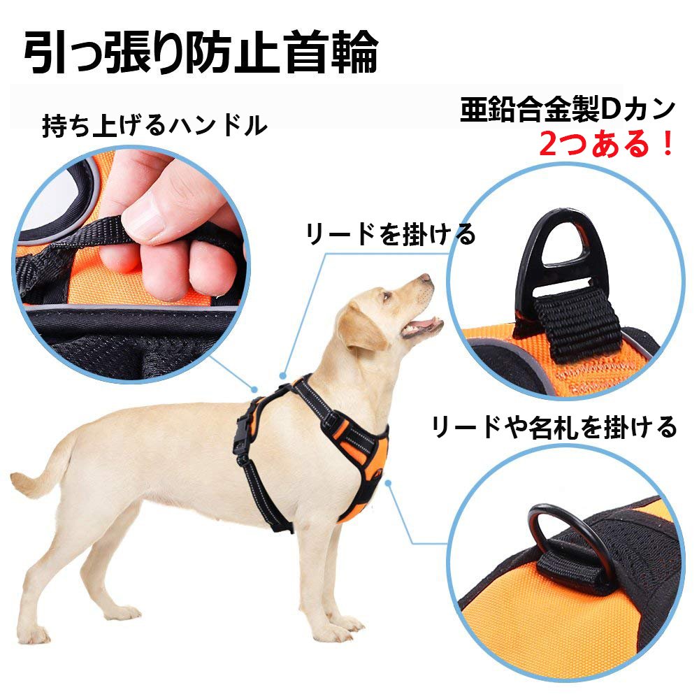 【材質】内側はやわらかいスポンジメッシュを使い、ふわふわで擦り感ない。軽くて通気性あるので、長時間着ても辛くない。金属製のリードフックや、オクスフォード製の表面で頑丈なはーねす、強い力でひっぱりする大型犬・中型犬に適用な良い強度。