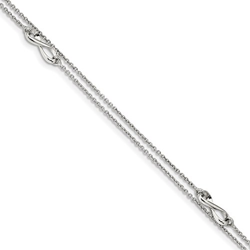 ICECARATS DESIGNER JEWELRY 925 STERLING SILVER 2 STRAND 1 INCH ADJUSTABLE CHAIN PLUS SIZE EXTENDER INFINITY ANKLET FOR WOMEN ANKLE BEACH CHAIN BRACELET