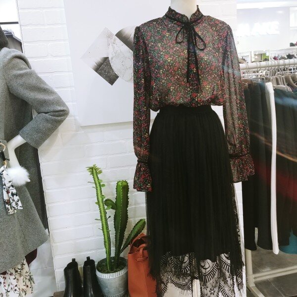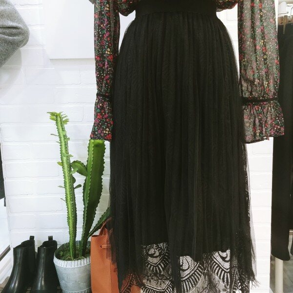 망사레이스로 여성스러움을 강조한 스커트입니다
