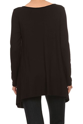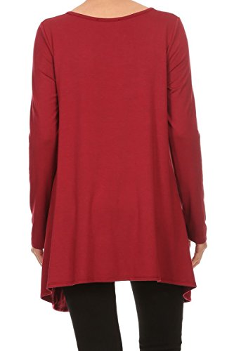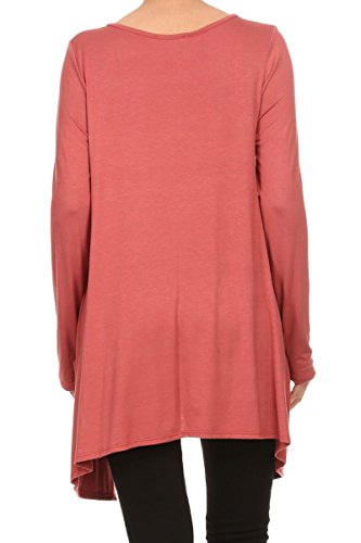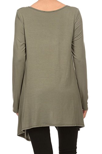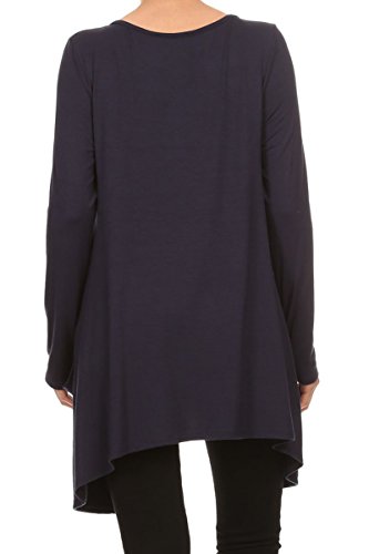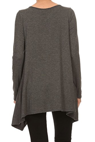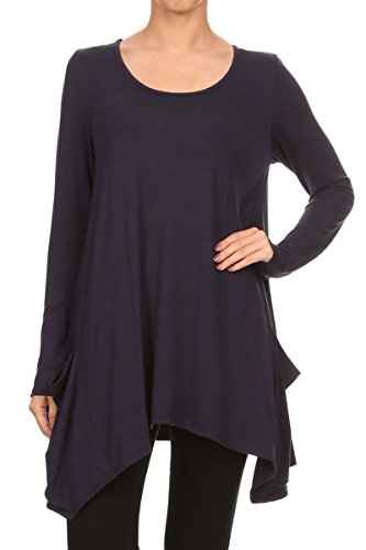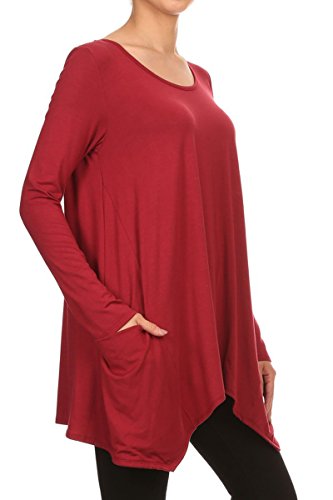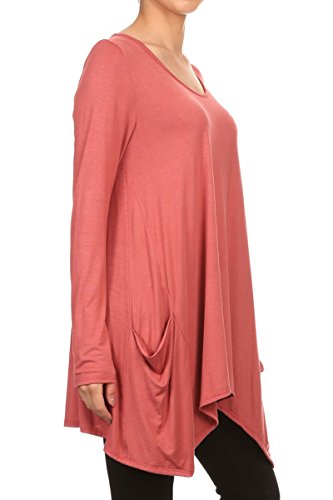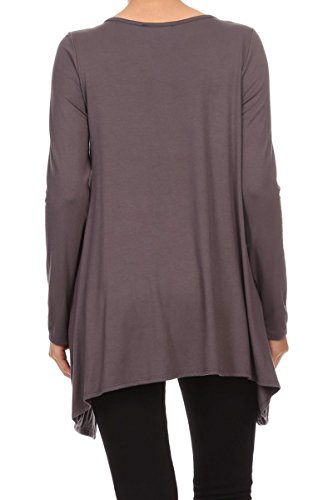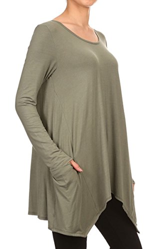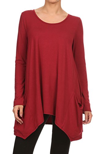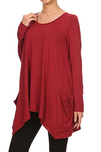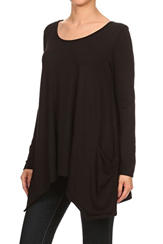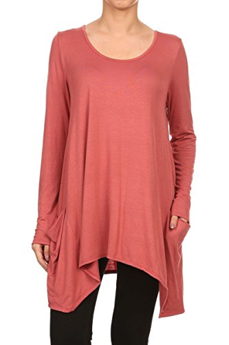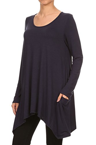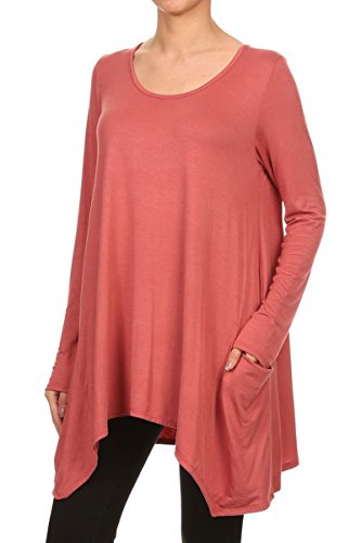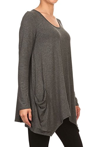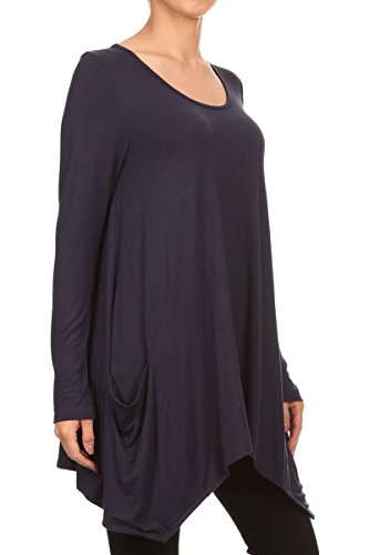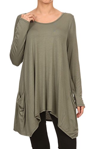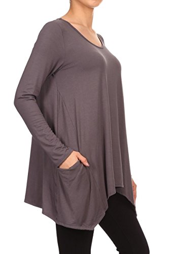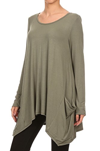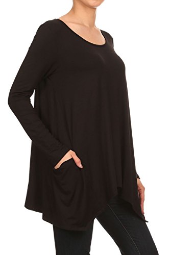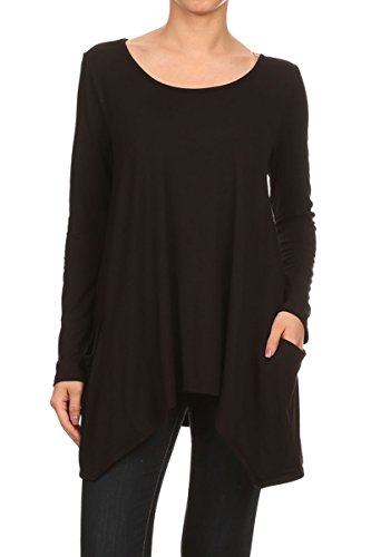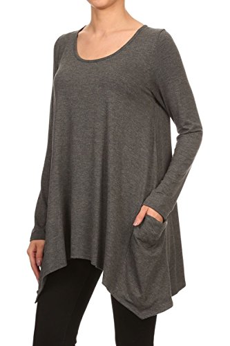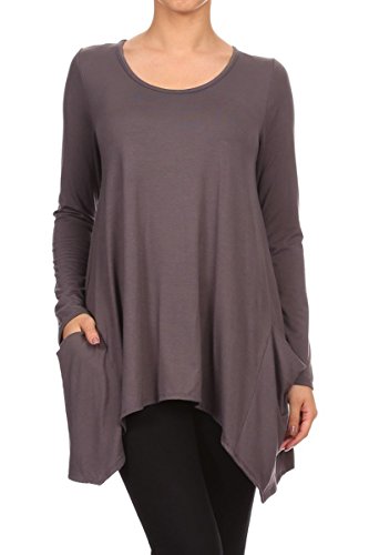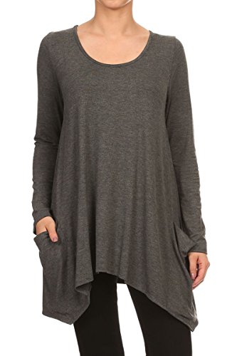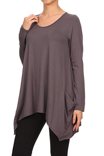 | HeyHun Women's Long Sleeve Asymmetrical Hem Round Neck Loose Fit Tunic Top w/ Pockets |