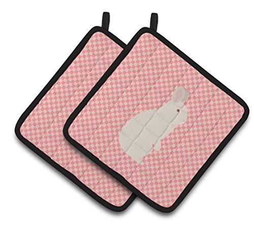 Caroline's Treasures BB7965PTHD New Zealand White Rabbit Pink Check Decorated Pot Holder, 7.5" x 7.5", Multicolor