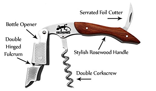 GECKORED 3-in-1 Waiter-Style Corkscrew: Provides Multi-Functional Ease and Efficiency with Corkscrew, Double-Hinged Bottle Opener and Foil Cutter Set in Strong Stainless Steel with Elegant Rosewood Handle So You’re Bartending in Style!