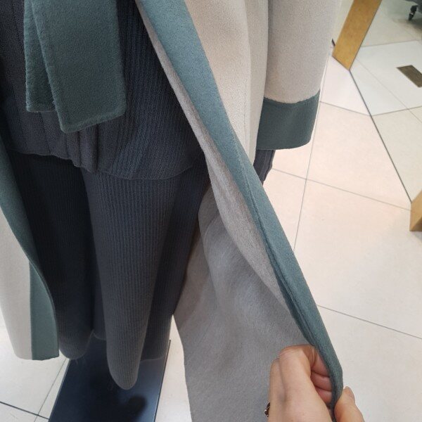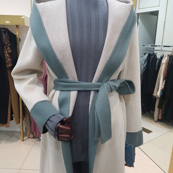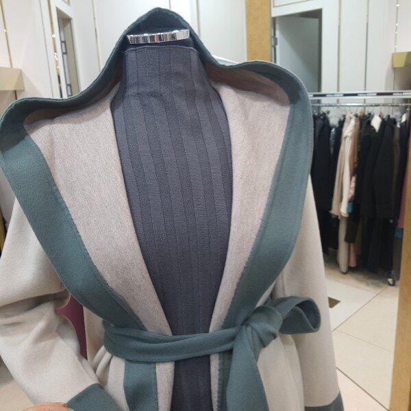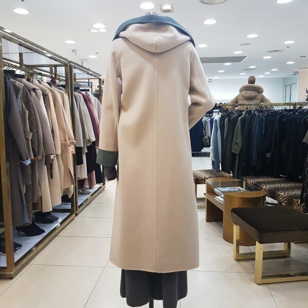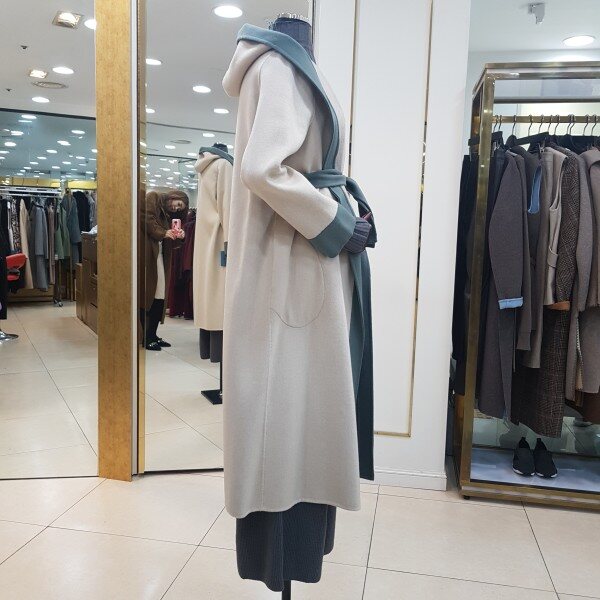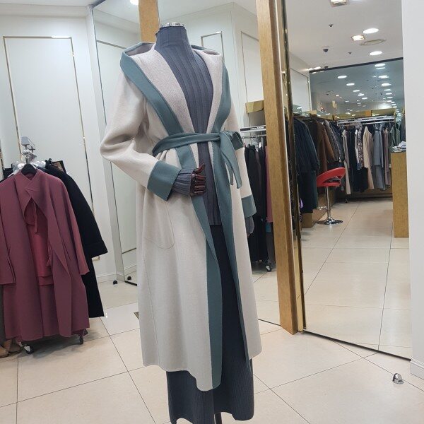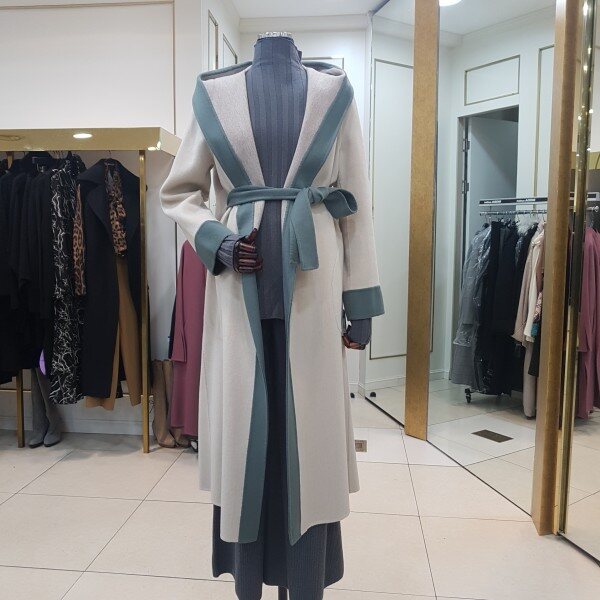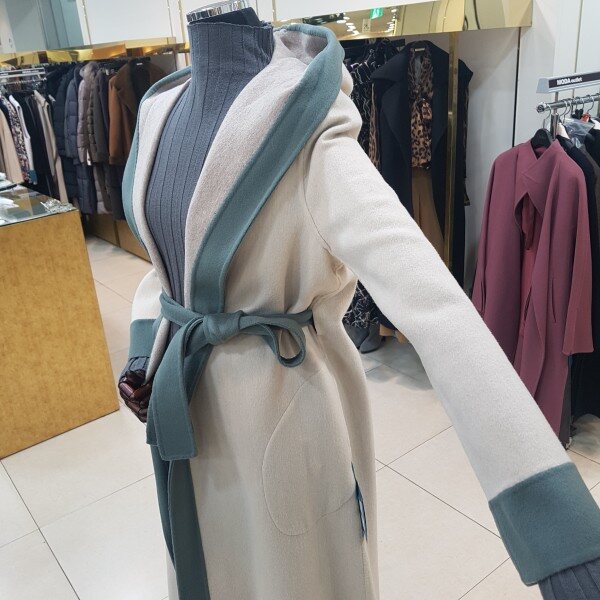 컬러배색 후드 롱 코트입니다.