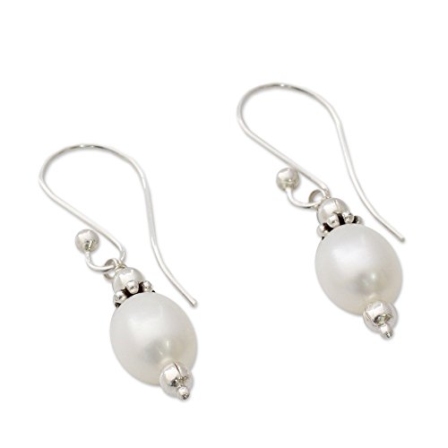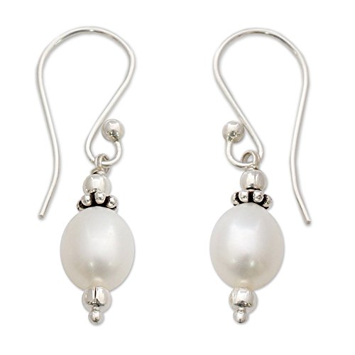 About this item: Cultured freshwater pearls in a natural cream color shimmer with elegance in this beautiful, classic design. Sterling silver accents offer a harmonious contrast in earrings by India's Narayani. .925 Sterling silver hooks. Earrings measure 1.2" by 2"