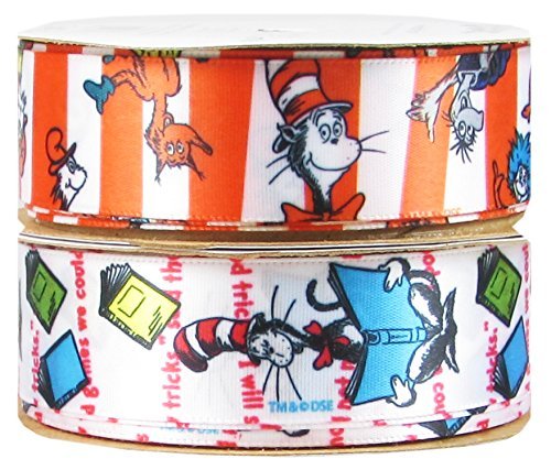 Offray Dr. Seuss Craft Ribbon Combo, 2 Rolls of 7/8-Inch x 9-Feet, Cat in the Hat for Hair Bows, Sewing, Scrapbook