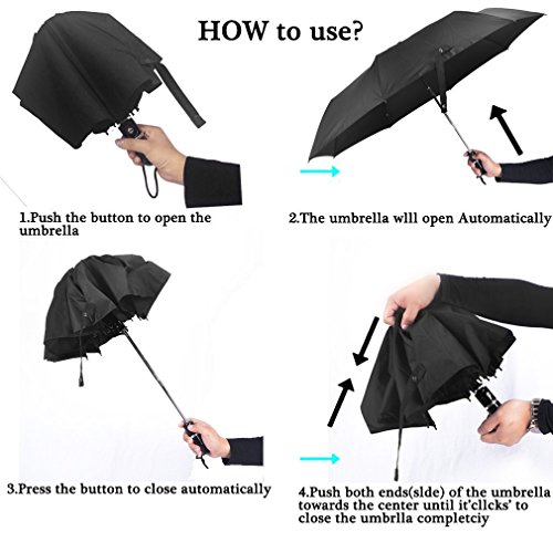 How to use Automatic open close Umbrellas in a second? You are always want to quick open the umbrella when you get off in the rains, especially during heavy rains. Automatic open close will bring you big change in using umbrellas. You can only use one hand open car door and the other hand press the button. Keeping perfect makeup look and elegant gesture when get off is easier. To open:Untie umbrella and push button to open umbrella automatically To close: Push button to close umbrella automatically. To reset :Push umbrella and handle together to reset.