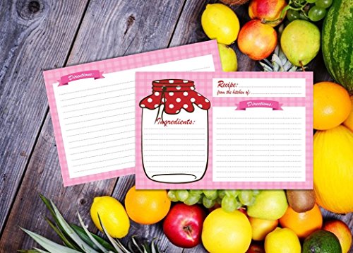Kitchen Classics Recipe Cards - 50 Double Sided Beautiful Pink Thick Cards.- 4x6 inches.