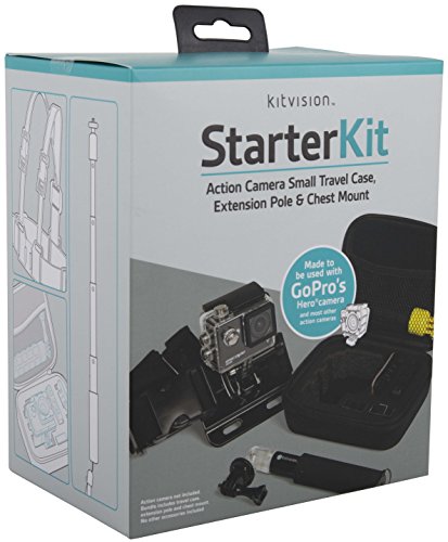 Kitvision Zubehorset fur Actionkameras mit Reiseetui Transportkoffer, Brustgurt Halterung und Universal Handstativ Einbeinstativ Selfie Stick Ausziehbar und Verriegelbar - Schwarz