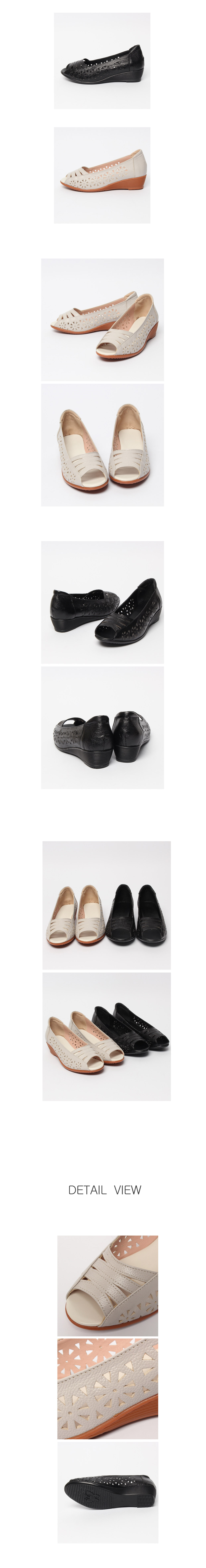 여성스러우면서도 세련된 디자인이 매력적인 리얼가죽 웨지힐 오픈토 슈즈입니다