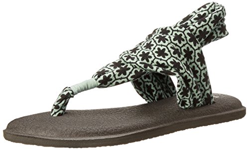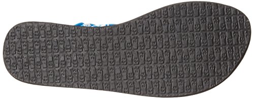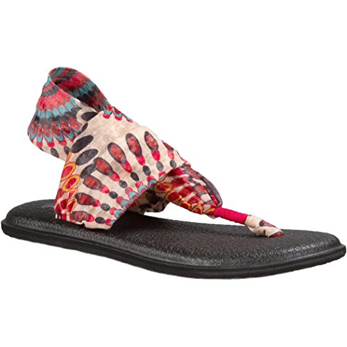 The women's Yoga Sling 2 Print flip flop by Sanuk has a lightweight, two-way stretch knit fabric upper with sling comfort construction, footbed made from real yoga mat with a sealed edge, and Happy U sponge rubber outsole. Sanuk, which means "Fun and Happiness" in Thai, was started by a southern California surfer with a whacked out taste in footwear. Whether you're a surfer chasing the perfect wave or a rock climber seeking the perfect line, Sanuk's goal is to offer you sandals that are as much about funk as they are about function. Unlike stiff shoes, Sanuk's patented sandal construction allows your feet to bend and flex the way nature intended. Walking with this natural motion strengthens your feet, enhancing both your balance and your performance.