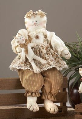 - Features a Primtive Country Cat Doll with weighted bottom and wired arms