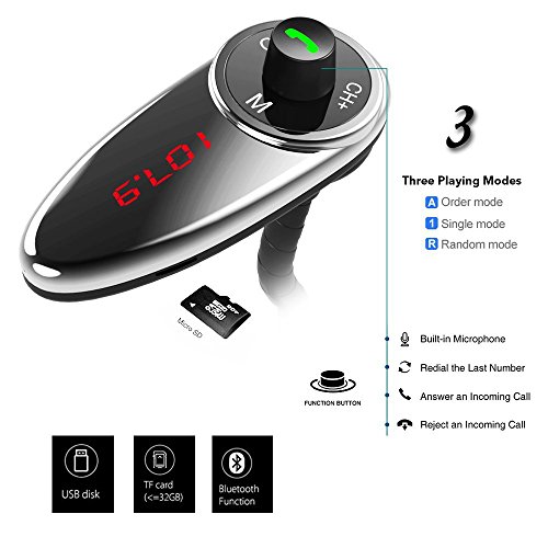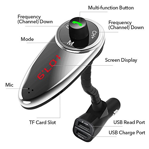 Easy to Use Plug the FM transmitter, adjust frequency and connect your phone or audio player. Then, enjoy your music and hands-free calling from your car radio channel. Easy to use. Unique Design