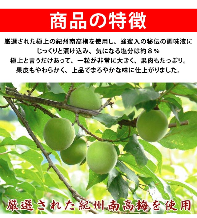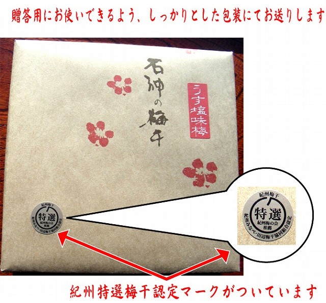| 商品内容 | 紀州南高梅 石神の梅「うす塩味(蜂蜜入)」450g 木箱入り |