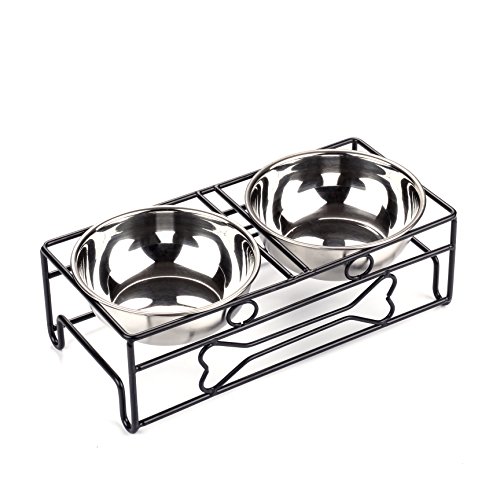Product Description Material: Anti-bacteria Stainless Steel bowls with Iron Stand. Size: 10.63 X 5.12 X 3.54 inches. Perfect for small dog and cat. Package include: 1 set pet feeder(include two bowls and one stand) 0
