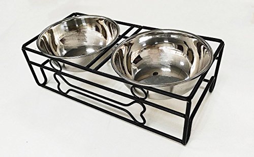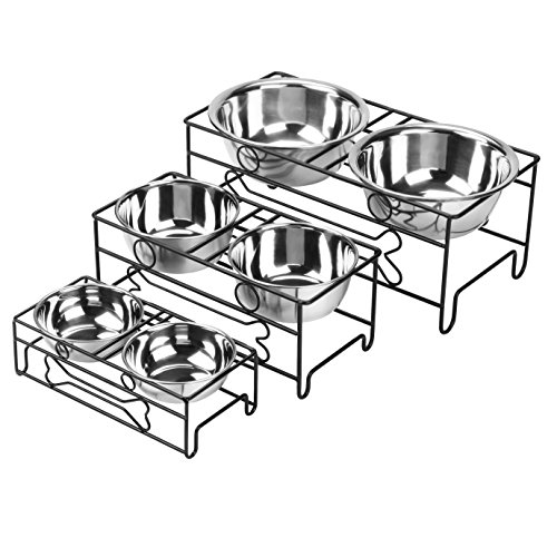(VIVIKO)/Pet Supplies/Feeding Watering Supplies/DIRECT FROM USA/VIVIKO Bone Style Pet Feeder for Dog Cat, Stainless Steel Food and Water Bowls with Iron Stand ...