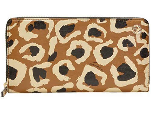• Gucci Leopard Interlocking GG Logo Camel and Black Leather Zip Around Wallet 309705