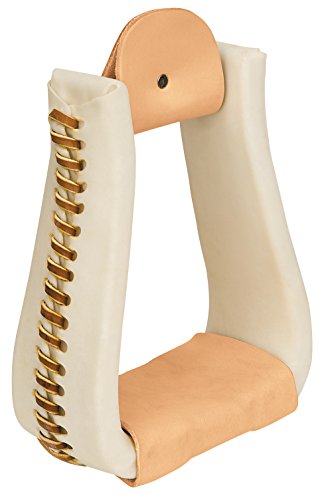 Studio : Weaver Leather Publisher : Weaver Leather Binding : Misc. Product Description Covered in heavy-duty bleached rawhide and featuring Indian tan laces and natural leather treads, these quality stirrups are ready to put on your saddle for a rustic western look. Roper stirrups are designed for stability and weight distribution and are great for roping or trail riding! Actual stirrup frame is synthetic, precision molded from a tough grade of polymer for excellent flexibility and durability. Sold per pair. Roper style features a 3" Neck, 3" Tread, 6" Height and 5" Width. 0